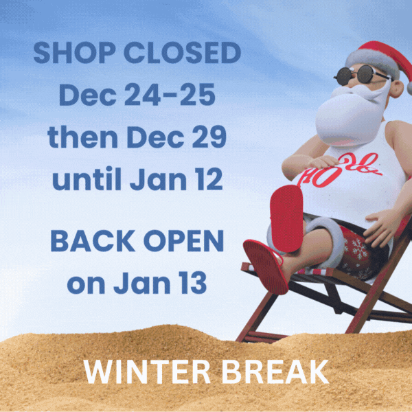 We are closed and on Winter Break after this Sunday — from Monday, December 29th through Monday, January 12th — then we will be back open on Tuesday, January 13th.